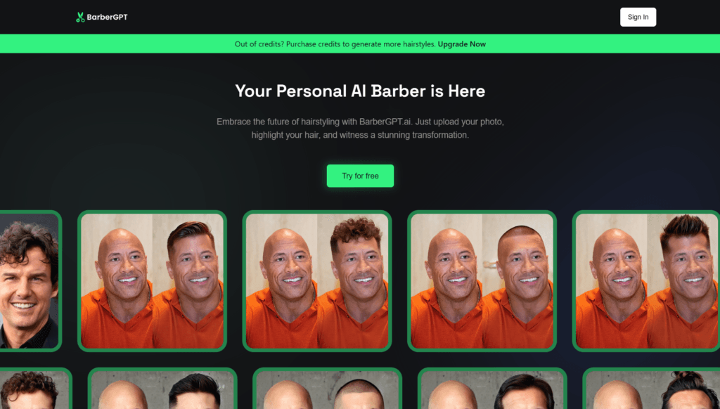 BarberGPT is an AI tool that lets you upload a photo, highlight your hair, and instantly generate realistic previews of new hairstyles to try before a real haircut.