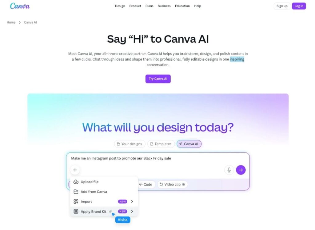 - Ask Canva AI: Chat interface for ideas, text, or design help