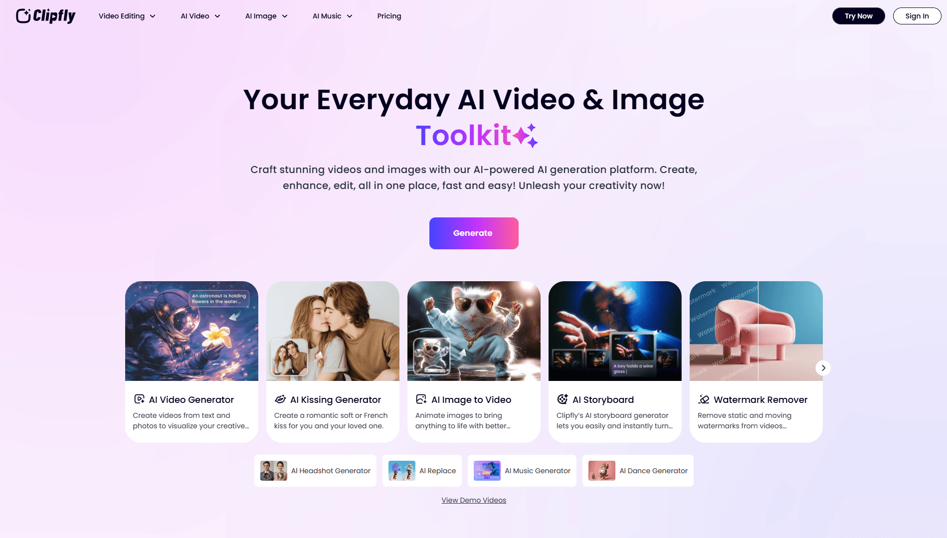 Clipfly offers a free plan that lets you use basic features and generate videos, but downloads will have a watermark. To remove the watermark and access premium features like the Video Enhancer, you need a subscription (starting around $19/month or weekly plans).