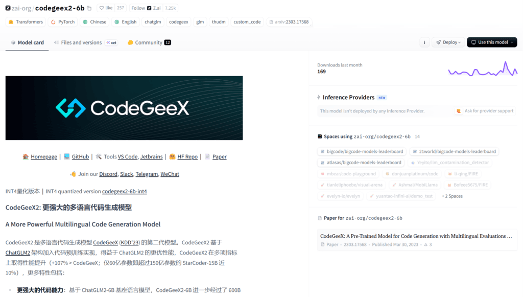 Released on July 24, 2023, CodeGeeX2 became popular among developers for its open-source nature (MIT license), strong multilingual capabilities, and efficiency on consumer hardware.