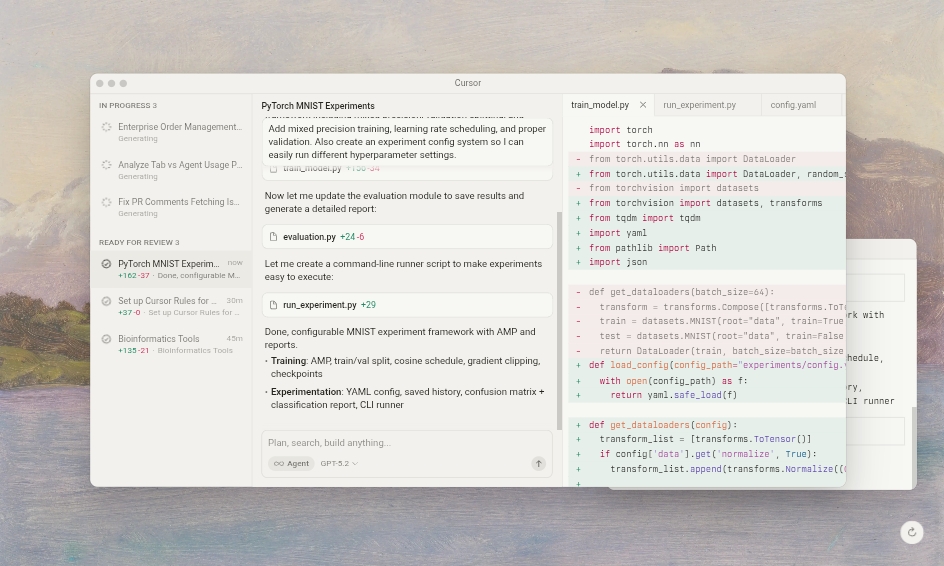 Cursor AI is an AI-powered code editor forked from VS Code, featuring intelligent autocomplete, agent mode, full codebase understanding, and multi-model support to accelerate development.