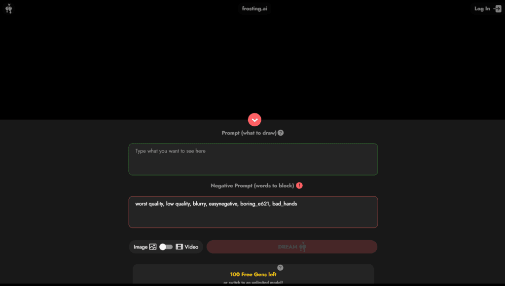 - Visit site: Go to frosting.ai (must be 18+ and agree to terms)