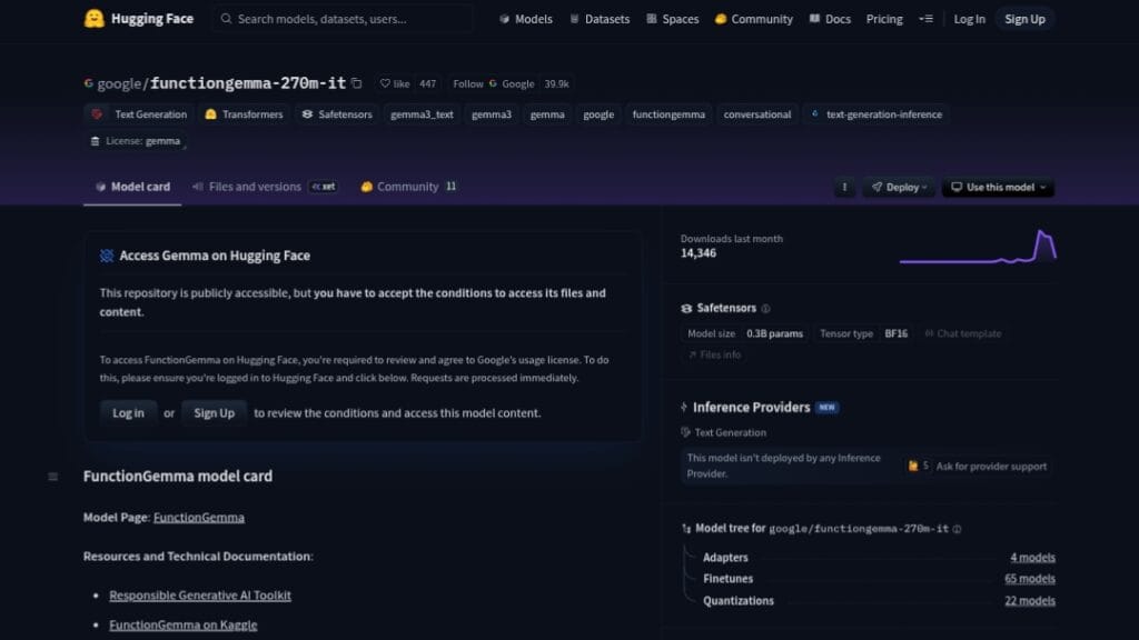 - Download model: Get weights from Hugging Face (google/functiongemma-270m-it) or Kaggle