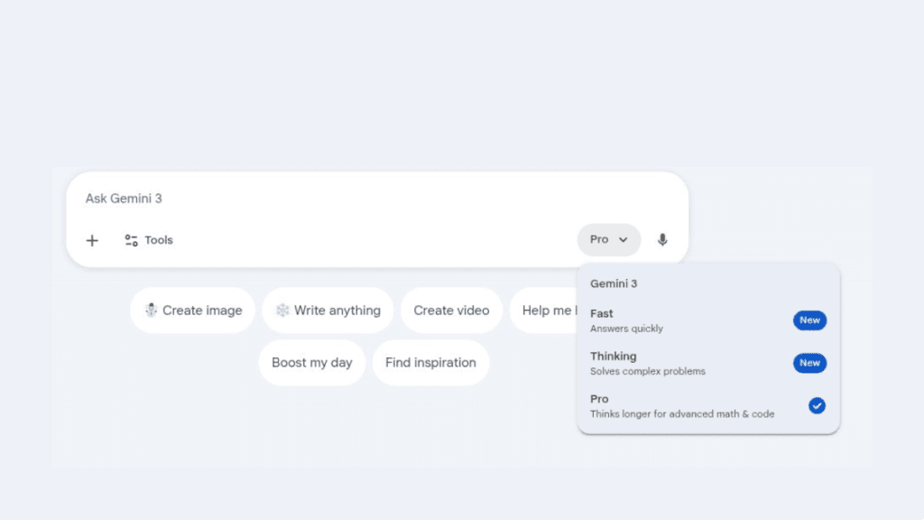 - Start chatting: Type or speak queries; Gemini 3 Flash is default for speed
