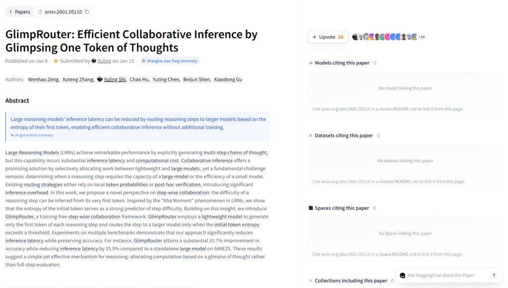 The paper introducing GlimpRouter was published on arXiv on January 8, 2026, with code released shortly after.