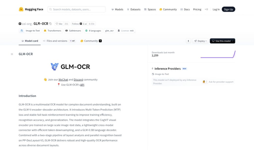 GLM-OCR was developed by Z.ai (Zhipu AI), with open-source release on Hugging Face in early 2026.