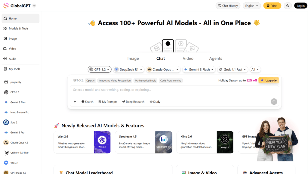 GlobalGPT is a comprehensive all-in-one AI platform that aggregates over 100 advanced AI models from providers like OpenAI, Anthropic, Google, xAI, and others into a single unified workspace.