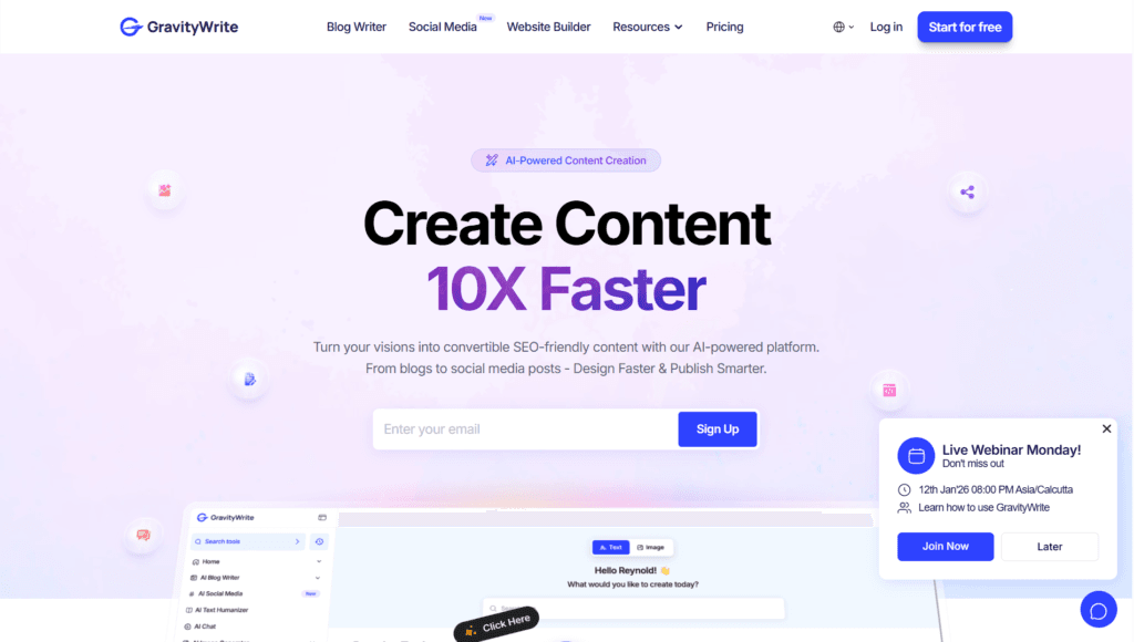 - Sign up: Visit gravitywrite.com and register for free (get 1,000 words bonus)