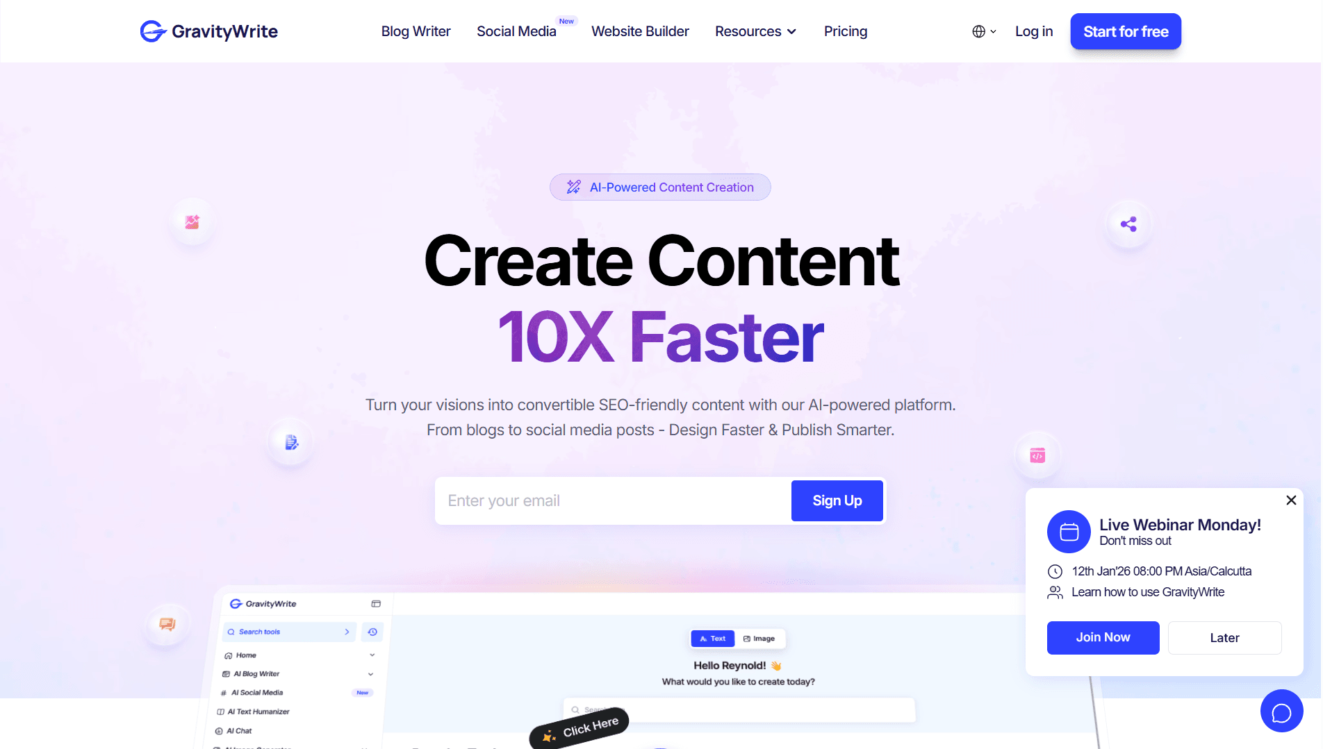 GravityWrite is an all-in-one AI content creation platform that generates blogs, social media posts, ad copies, emails, images, and more using advanced AI models, with 250+ specialized tools for fast, SEO-optimized output.