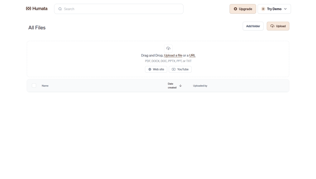 - Sign up: Visit humata.ai and create free account (no card needed for free tier)