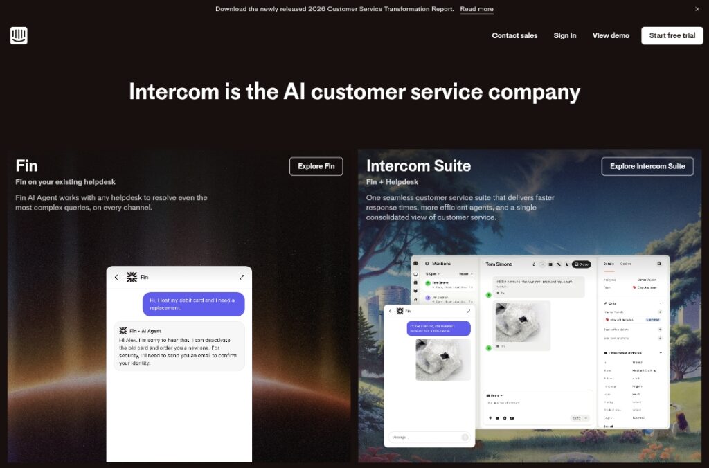 Intercom AI is the AI customer service platform featuring Fin, the #1 AI Agent for resolving complex queries, combined with a next-gen helpdesk for efficient support at scale.