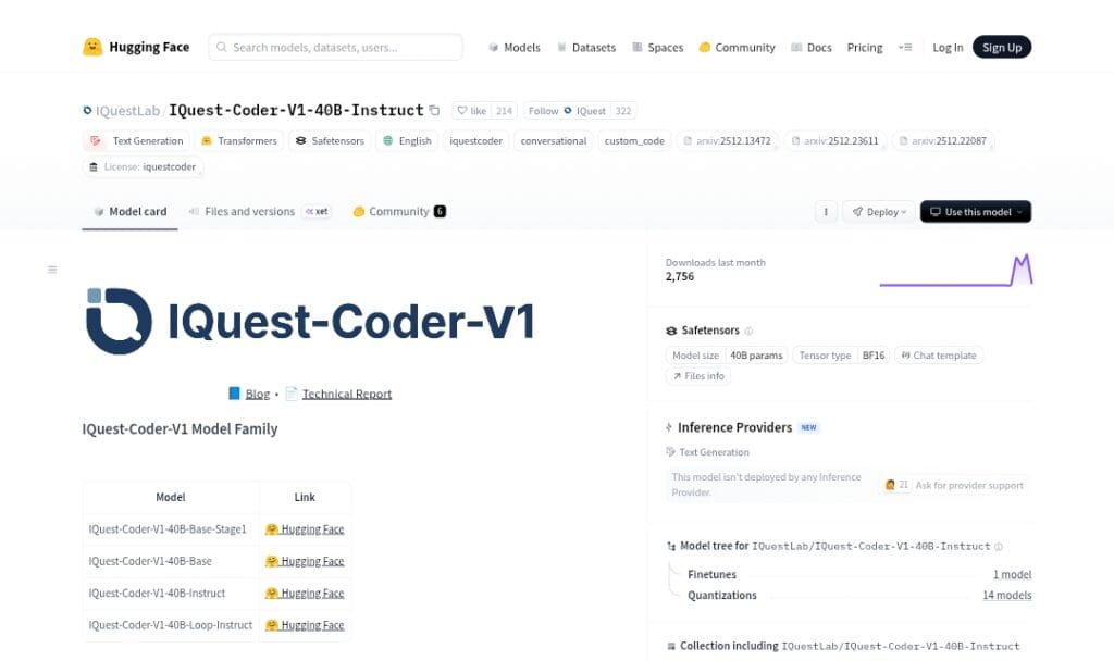 - Visit Hugging Face: Go to huggingface.co/IQuestLab for model cards and weights