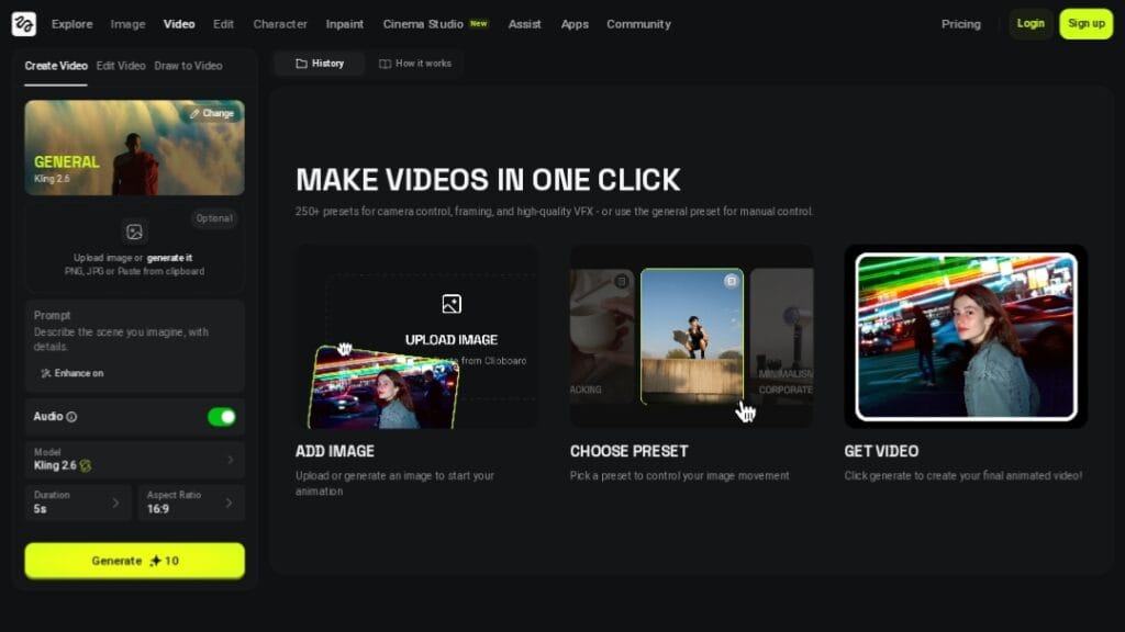 Kling AI is a next-generation AI creative studio from Kuaishou that generates high-quality videos and images from text prompts or images, with advanced features like native audio-visual output, motion control, and multimodal editing.