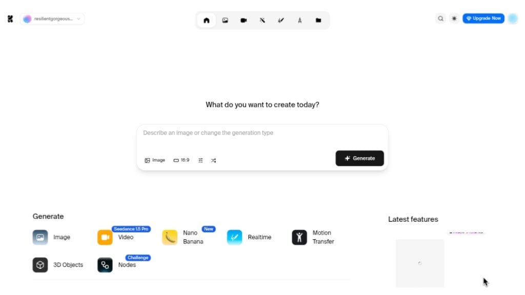 - Choose tool: Select image/video/3D generation, enhancer, or canvas from dashboard