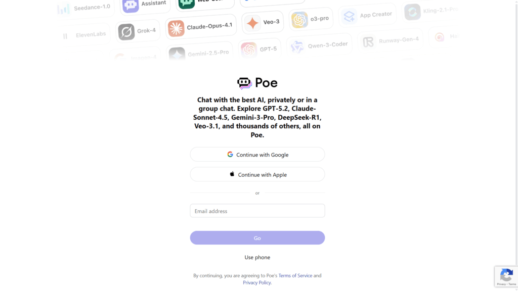 - Sign up: Visit poe.com and create free account (email/Google/Apple)