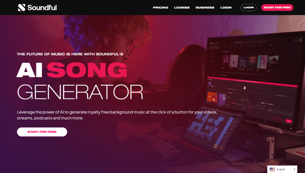 Founded in 2019 in San Diego, Soundful emphasizes ease of use, high-quality AI-generated music, and direct distribution to SoundCloud in Pro plan.