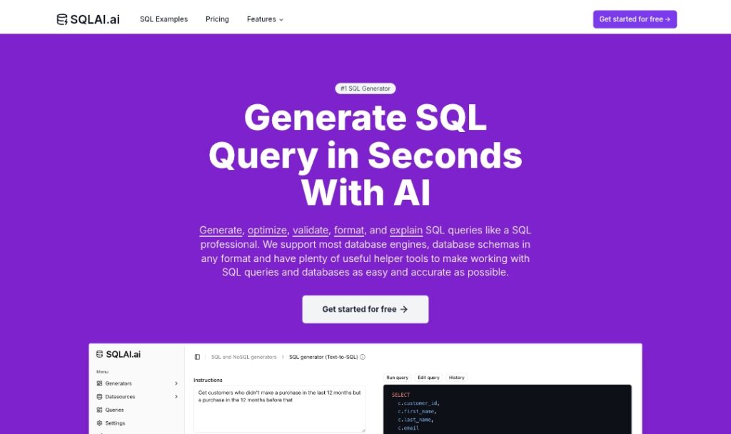 SQLAI.ai is an AI-powered multi-tool for generating, optimizing, validating, formatting, and explaining SQL/NoSQL queries from natural language, with support for many databases and live execution.